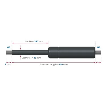 Gasfjäder 250mm 10/21mm - 610mm