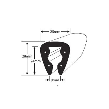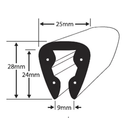 28x25mm PVC4/5 Relingslist Mjuk SVART